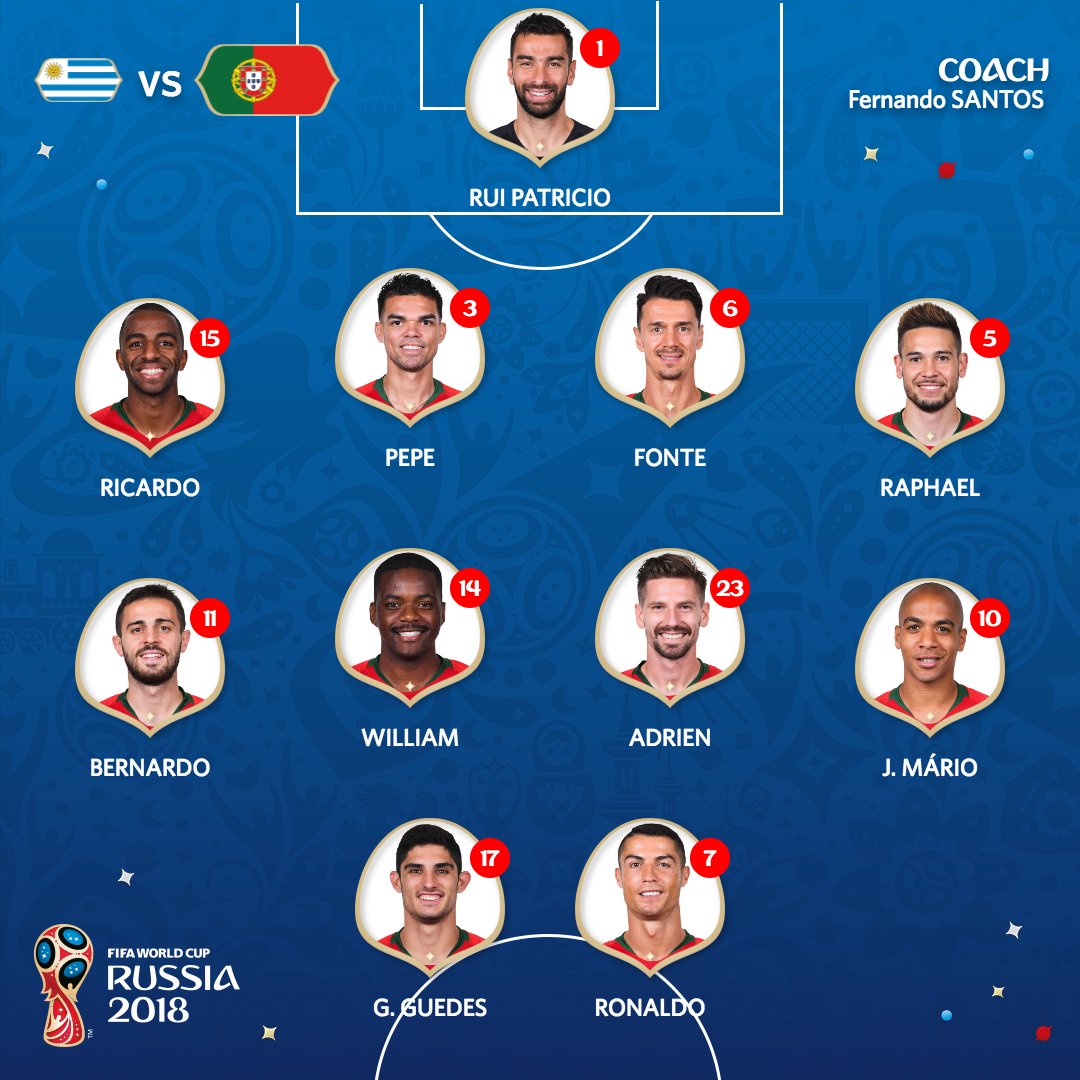 Mondial 2018 – Uruguay vs Portugal , les compos officielles !