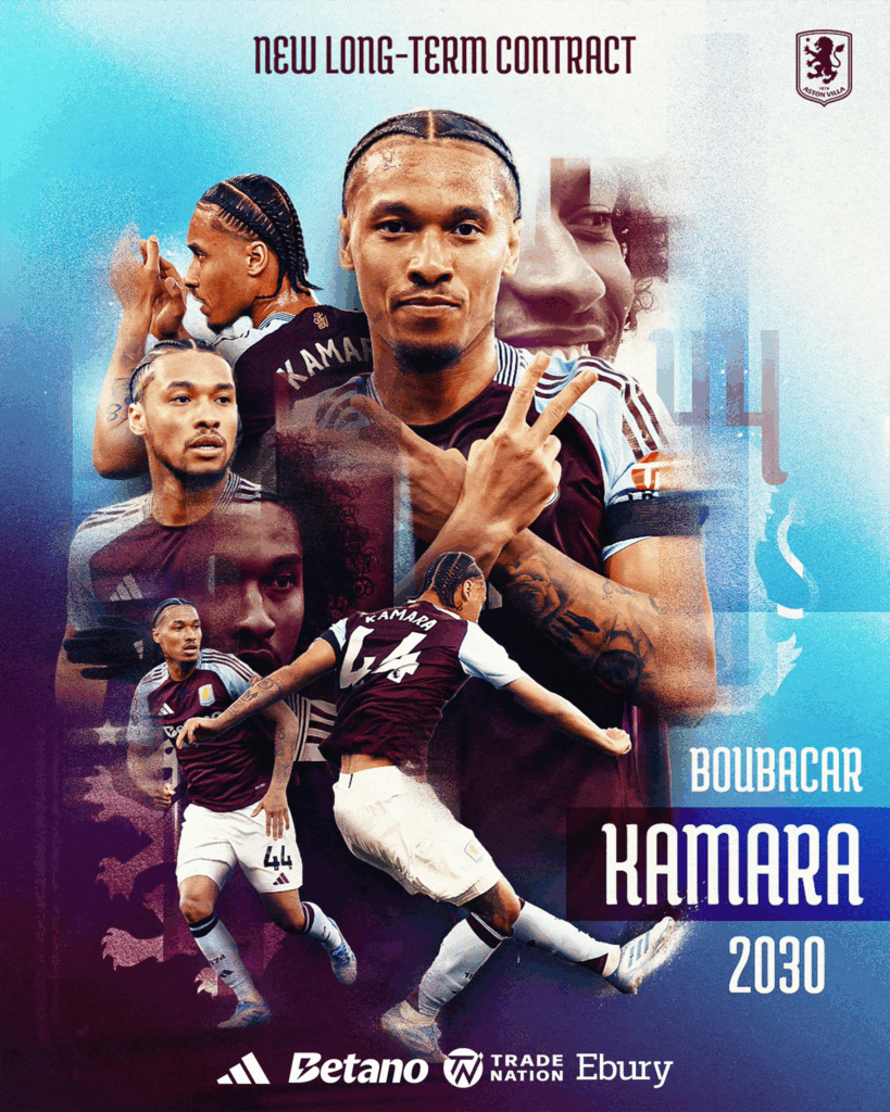 Boubacar Kamara (25 ans, 41 matchs et 1 but toutes compétitions pour la saison 2024-2025) a officiellement prolongé son contrat avec Aston Villa jusqu’en juin 2030.